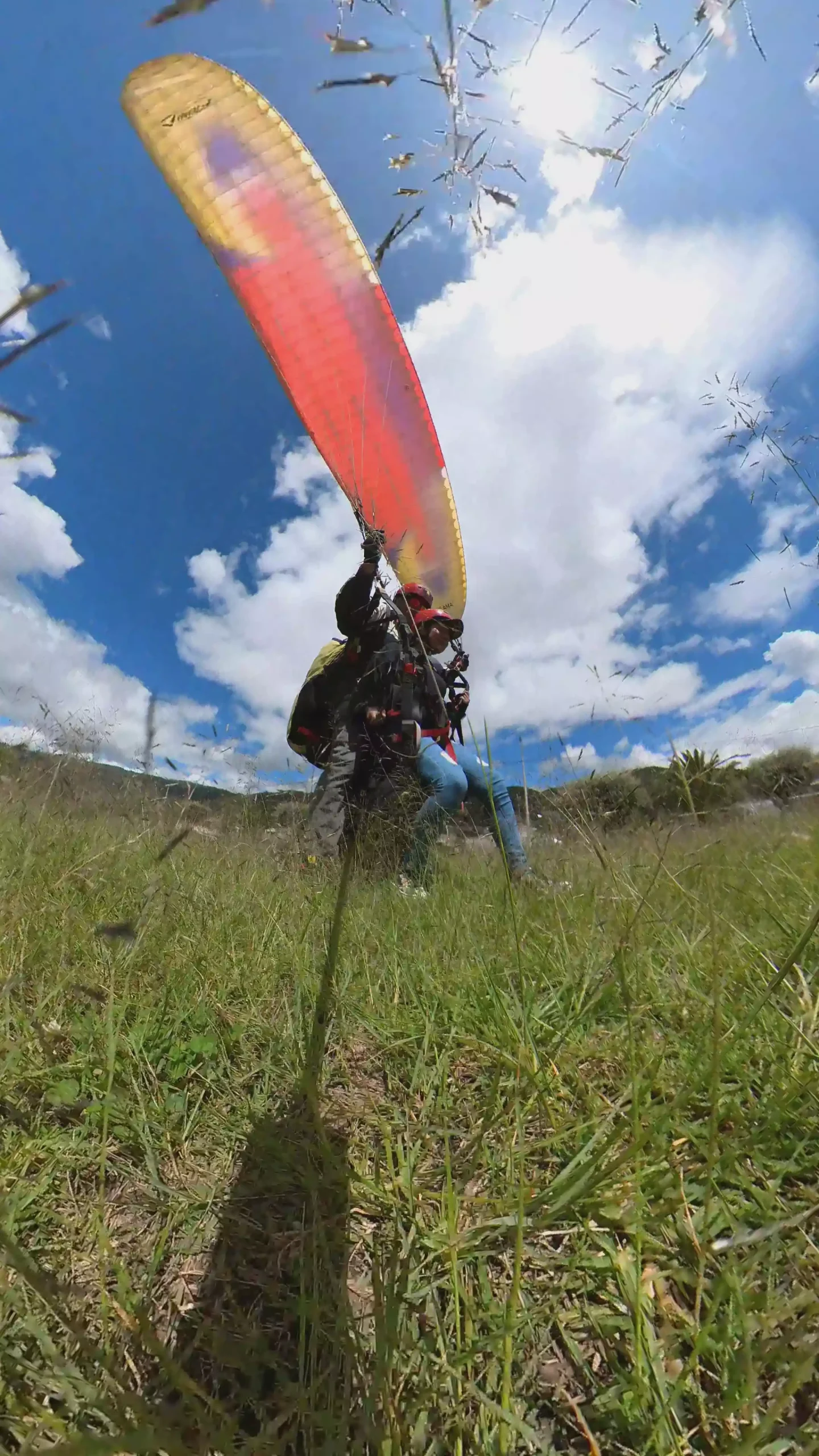 🪂 Vuelo de 8 – 12 minutos sobre montañas, el río Paute y todo el cantón, con aterrizaje 100 % seguro.